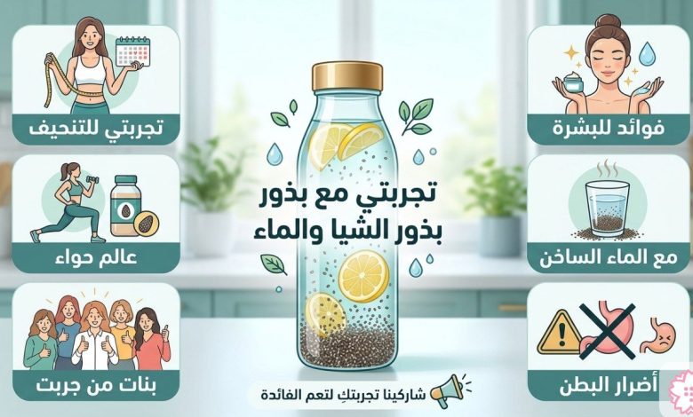 بعد أن شاركتكم كافة تفاصيل تجربتي مع بذور الشيا والماء والفوائد التي لمستها على صحتي وبشرتي، أدعوكم الآن لمشاركتي تجاربكم الخاصة. هل سبق لكِ تجربة بذور الشيا في نظامكِ الغذائي؟ وكيف كانت النتائج بالنسبة لكِ؟ إن تفاعلكم وكتابة تجاربكم في التعليقات يساعد بقية القراء على فهم كيفية استجابة الأجسام المختلفة لهذه البذور، ويقدم تغذية راجعة حقيقية حول أفضل الطرق لاستخدامها. لا تترددي في طرح أي سؤال أو مشاركة وصفة خاصة تبتكرينها باستخدام بذور الشيا، فكل معلومة صغيرة قد تكون هي المفتاح لنجاح رحلة شخص آخر نحو الصحة والجمال.
