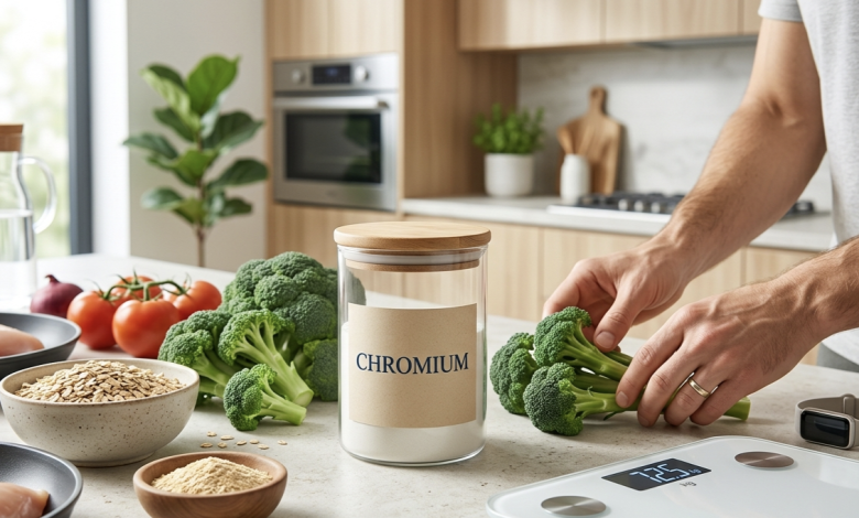 تعريف مكمل الكروميوم: هو معدن أساسي يحتاجه الجسم بكميات ضئيلة لتعزيز مفعول الأنسولين، مما يسهل دخول الجلوكوز إلى الخلايا لإنتاج الطاقة، ويتوفر غالباً في صورة “كروميوم بيكولينات” لضمان أعلى مستويات الامتصاص الحيوي.